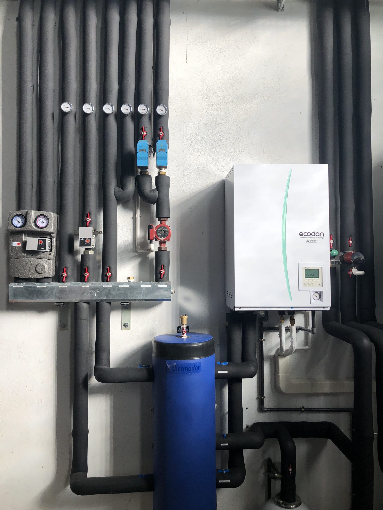 Instalación de Aerotermia por calefacción con radiadores y segunda zona con suelo radiante Uponor Mitsubishi Ecodan